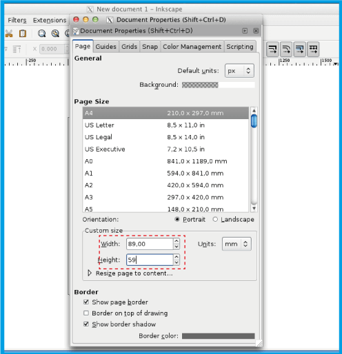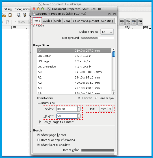 2.1 .Make sure you add 4mm (0.4cm) to the height and width of your document.In the case of the 8.5x5.5cm business card insert 8.9x5.9cm.