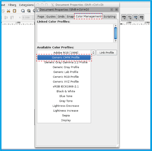 1.4 .On the menu Color Management on Available Color Profiles choose Generic CMYK Profile so there is no change in color (image below).