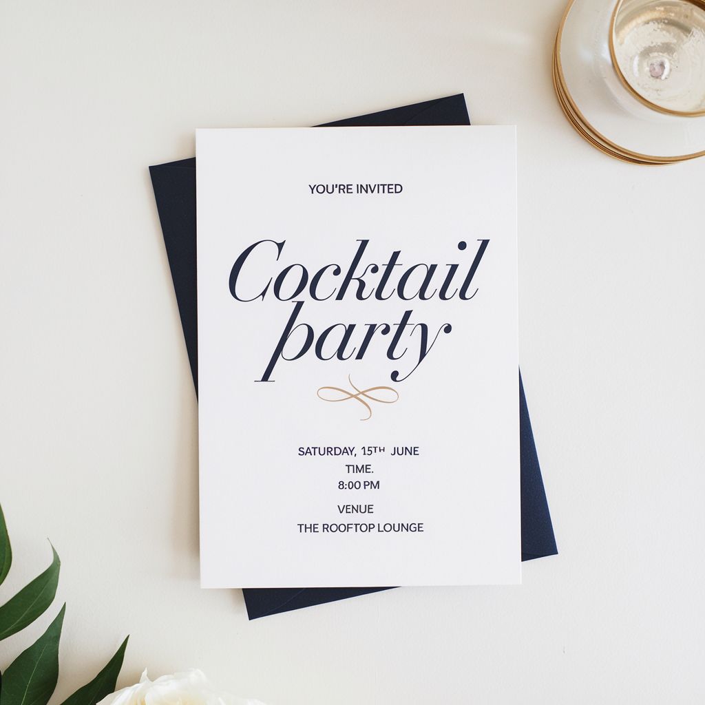 Stylish invitations for cocktail events. Customizable with event details, themes, and designs. Great for social gatherings and celebrations.