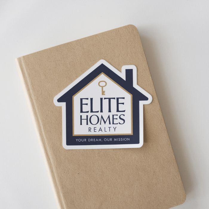 - House-shaped labels ideal for real estate and branding